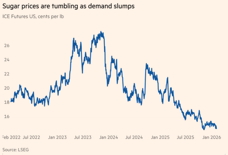 Você sabia que injeções para perda de peso ajudaram a levar o preço do açúcar ao menor nível em cinco anos?