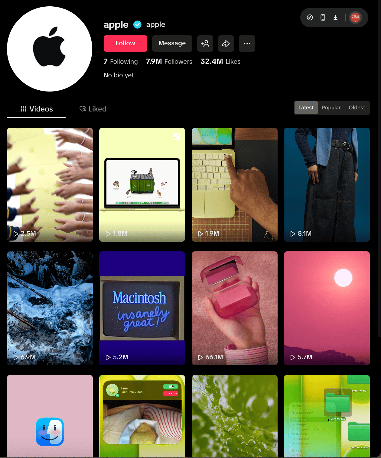 A Apple praticamente apagou todos os vídeos antigos do perfil — um canal com mais de 7,7 milhões de seguidores — e transformou o espaço inteiro em um universo dedicado ao MacBook Neo. Os vídeos seguem quase um manual da cultura da internet atual: