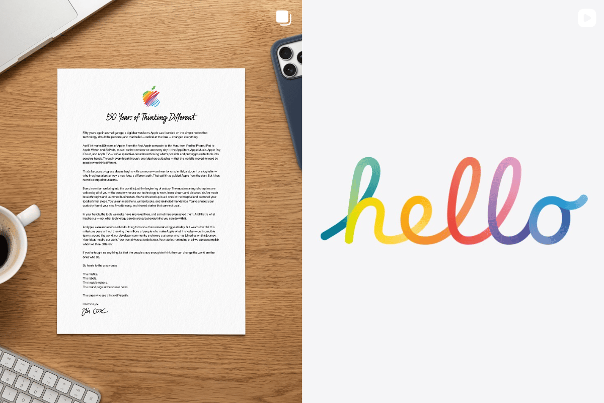 No seu Insta, seguiu o roteiro de sempre: visual limpo, estética polida, editorial. O branding clássico que transformou a Apple em sinônimo de desejo.