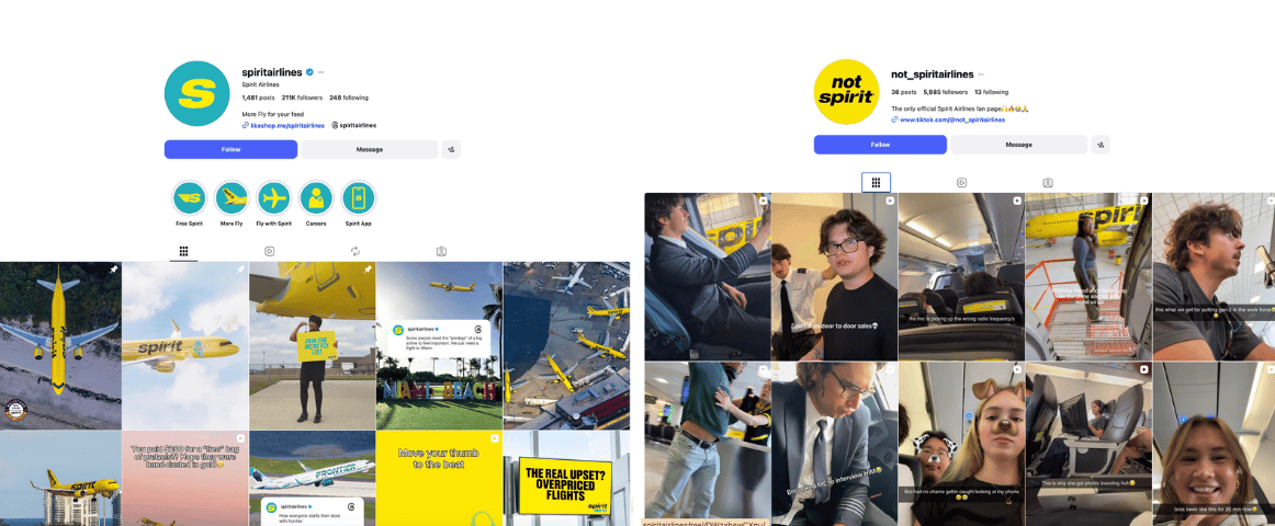Já a Spirit Airlines lançou a “not a Spirit Airlines”. O quinto vídeo bateu 6 milhões de views com zero seguidores.